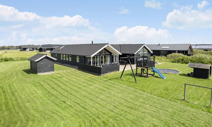 Spend an unforgettable break in this holiday home with plenty of activity options in the idyllic countryside of Nr. Lyngby, north of Løkken. Your holiday home, which can accommodate several families or a larger group, is the ideal place for a relaxing holiday. The modern and spacious kitchen invites you to cook together. The living area impresses with large windows that let in plenty of natural light and create a cosy atmosphere. Relax on the comfortable sofas, play board games or enjoy cosy evenings by the wood-burning stove.