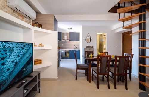 Look forward to a wonderful vacation with your family in this tasteful and inviting terraced house. Inside, you will be greeted by beautiful and comfortable rooms that combine the rustic flair of the stone walls with attractive furnishings and great facilities. A spiral staircase takes you to the upper floor, where you will find two bedrooms with high gabled ceilings for restful nights.