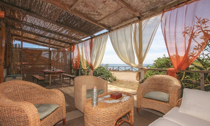 In the midst of unspoiled nature is located this cottage, a former tuna fishing site from the 16th century. It is only 16 meters from the beach. In 2 km you can reach Torre dei Corsari, a lively tourist village with the beach Pistis, where you can find the highest beach dunes in Europe. The rich Mediterranean vegetation fills the air with characteristic scents. The house has a living room with a wood-burning stove and a habitable kitchen with a stone washstand. Descending a few steps, you come to the first bedroom with double bed and bathroom with open shower. From the living room a wooden staircase leads to a higher floor with another bedroom with double bed and a bathroom with half bath and into a smaller bedroom with small bathroom with open shower. The bedrooms have air conditioning, and the living room with two open sides is always pleasantly cool. In front of the house is a private area with table and chairs, armchairs and sofas, behind the house is a paved terrace, with wooden railing. The vacation accommodation is adjacent to ISD844.