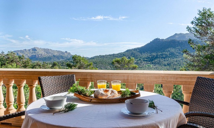Welcome to this beautiful house in the mountains near the monastery of Lluc, with terrace and beautiful views, ideal for 6 guests. The Tramuntana area is a paradise for hiking, cycling and enjoying a different kind of Mallorca, quiet and in the middle of nature. The monastery of Lluc is an emblematic place and at the same time a starting point for many hiking routes. In the surroundings you can visit picturesque villages such as Valldemossa, Sóller and Fornalutx and enjoy the mountain coves such as Sa Calobra and Cala Deià. Within half an hour's drive you reach Inca, a town with many services, supermarkets and bars. A car is necessary. The house has a nice furnished terrace with panoramic views over the mountains and forests of the area; ideal to enjoy a quiet breakfast and to watch the stars at night. The living-dining room is very bright and invites you to watch satellite TV, read a good book or eat together. The 3 bedrooms, two with 2 single beds and one with a double bed, offer air conditioning hot/cold and wardrobe. The house has two full bathrooms with shower. The independent kitchen is fully equipped, including a gas hob, dishwasher and cooking utensils. The house is equipped with washing machine, iron, ironing board and a cot and high chair under if needed.Please note:In the Balearic Islands there is a tourist tax, called Ecotasa, which has to be paid for each guest from 14 years old. The amount is 2.2 EUR per night and person in high season and 0.55 EUR per night and person in low season. From the ninth night onwards and only during high season, this amount is reduced by half. The Ecotasa will be charged prior to arrival by Visa / MasterCard with a secure payment link. This payment is compulsory.Important: as required by law, we have to ask for copies of ID cards or passports of all guests over 16 years of age. This information is sent by email.The deposit will be held via credit card and the client will have to provide their details via a secure payment link. It will be returned within 7 days after departure.IMPORTANTOur office hoursMonday to Saturday 9h to 17h24h Emergencies (calls only-opt 2)