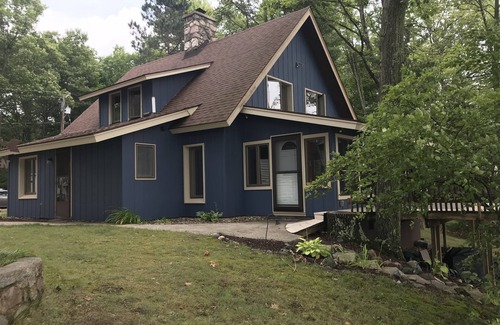 Authentic rustic log cabin on 8-Point Lake in Michigan with 100 feet of lake frontage. Enjoy the all sports lake and great swimming in the clear sandy bottom lake just steps away. View the beautiful Fall colors or go golfing on many golf courses near by. Eight Point Lake includes a public accessible boat launch and is stocked with fish each year. We also have a dock to tie up your boat. In summer go on the biking/hiking trail near by or ride your bike or 4-wheeler around the lake. Watch the beautiful Michigan sunsets from a cozy blaze in the fireplace or at the fire pit by the water's edge. It's vacation time!
