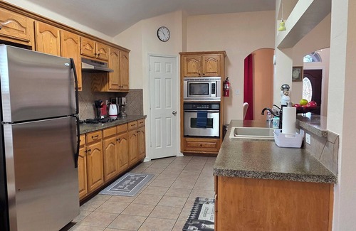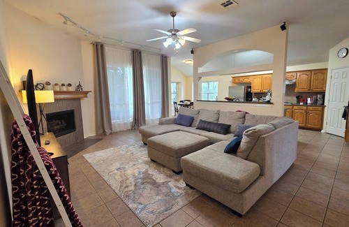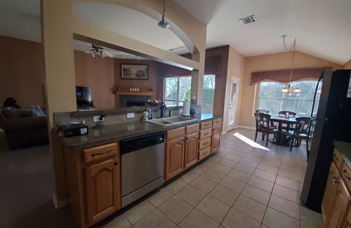 Come relax with your family and friends at our tranquil lakeside home. Sleep comfortably in our 3 spacious bedrooms and enjoy the open living area which has plenty of space to kick back and relax. Access the lake directly from the fully gated back yard, only a stones throw away. Enjoy fishing, wake boarding, kayaking, and more all within a short drive. Bring your boat! The public ramp is super close.