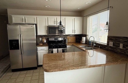 Keep it simple at this peaceful and centrally-located place. Ultra convenient location, only 3 min to Provo airport. Stunning Mountain views. This stylish and cozy house is ideally located just minutes from Provo downtown (5 min) and shopping center (3 min). Whether you are here for business, visiting BYU, or exploring Utah’s breathtaking outdoors, our space offers comfort, en convenience, and a touch of luxury.