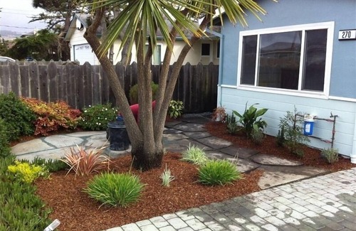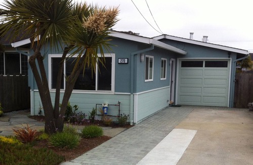 CUTE COASTAL HOME on the ocean side of Highway 1 only 40 yards to the entrance of Poplar St. Beach and Open Space. Our home is fully remodeled 3BR+/1 BA. A WALK ON THE BEACH is less than a 5 minute stroll.