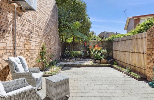 This is a fully renovated 2 bedroom townhouse in Batehaven. Close to everything. Enter into a lovely kitchen which overlooks the dining/lounge. Off here is a very nice, leafy, fully fenced courtyard - perfect for a BBQ or an afternoon drink after a swim. Located at the back of the block there is a real sense of peace and quiet at this property. The location is perfect - next to to Corrigans Cove fantastic restaurant, you can walk or ride your bike everywhere.