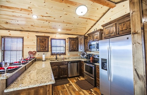 High end luxury cabin for couples where it is Valentine's Day every day! Featuring Hot Tub, Hammock for 2, Outside Grilling Area, Walk In Shower, Luxurious King Bed outfitted with top of the line bedding. Fully Equipped Kitchen with Granite Counter Tops & High End Appliance for that romantic Gourmet Meal. Cozy living room with gas log fireplace and mountain view. Breathtaking views looking off the back deck overlooking Wildlife Management Area. Indian Lookout Mountain Cabins offer secluded one-bedroom luxury cabins. Our lavishly equipped cabins offer the perfect retreat for honeymoons, anniversaries and lovers getaways, but will also accommodate any couple or two, or even a small family, with it’s king bed and deluxe queen inflatable bed.