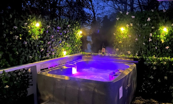 Romantic decor available for $350. Includes rose petals, candles, chocolates & a bottle of bubbly to enjoy while star gazing in an intimate hot tub🥂💕