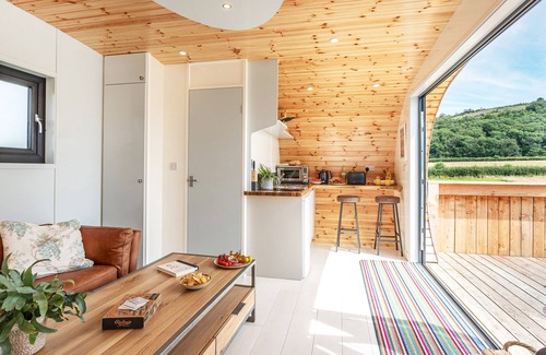 Amenities: Central heating with woodburning stove. 2-ring hob, Smart Oven, fridge. WiFi. Fuel, power, and starter pack for woodburning stove inc. in rent. Bed linen and towels inc. in rent. BBQ. Secure storage for bikes and outdoor equipment. Ample off-road parking along with a fast electric charging point. Front balcony with furniture and hot tub. The pod has a 22 kilowatt electric vehicle charger. Sorry, no smoking. Note, this property is for adults only; no children or infants are permitted. Shop and pub 1.1 miles. Note: The hot tub is a bespoke design which features jets but no bubbles.