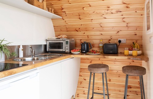 The living areas in this single-storey pod consist of a studio-style kitchen, dining area and sitting area with a 2-ring electric hob, microwave, fridge, and woodburning stove. The bedroom is a king-size, alongside a walk-in shower room. Outside there is a private balcony with hot tub and furniture, and ample off-road parking. You'll find a shop and pub in 1.1 miles. Sorry, no smoking. WiFi, fuel, power, bed linen and towels are all included in the price. Retreat to Cumbria for a romantic break by staying at Glamping Pod 1. Note: The hot tub is a bespoke design which features jets but no bubbles.