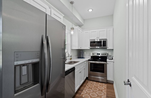 This lower-level home enjoys a cozy living area with comfy furniture and a 65-inch Roku smart TV with streaming services so you can stay up to date with your favorite series and shows. Spend tranquil evenings watching TV or treat yourself and your guest to a delicious summertime cookout using the gas grill available on the patio. Back inside, you have a well-appointed kitchen with all stainless steel appliances that will make cooking a breeze. Additional perks include a shared outdoor shower and an on-site washer/dryer.