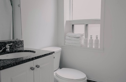 Welcome to The Nature View at The Queen in Downtown, Toronto! This spacious upstairs unit features a cozy bedroom, a comfortable sofa bed, and a bathroom. The unit is bathed in natural light from large windows and a beautiful skylight, offering serene views of lush trees. The Nature View combines modern comfort with stylish elegance. Located on vibrant Queen St E, explore trendy cafes, restaurants, and local attractions just steps away.