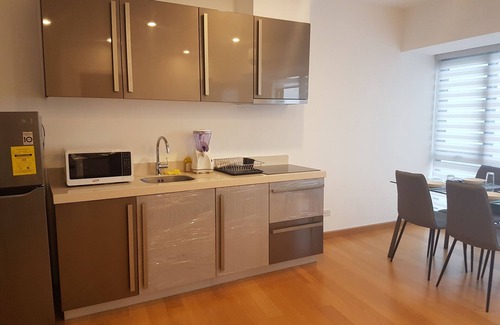 Balcony with Private Loggia pool with great unobstructed views of city skyline and beyond. Pocket Wifi, 55" Samsung Smart LED TV with Netflix access, LG ref/freezer, European brand built-in induction cooker and Blum kitchen. 2 parking slots available. WITH Sentry electronic safe. This place is quiet and very convenient.