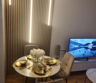 Offering city views, LUX apartmani Tuzla in Tuzla features accommodations, a terrace, and a bar. There's a private entrance at the apartment for the convenience of those who stay. The apartment offers rooms with air conditioning, free private parking, and free Wifi. The units come with parquet floors and feature a fully equipped kitchen with a dishwasher, a dining area, a flat-screen TV with streaming services, and a private bathroom with walk-in shower and slippers. An oven, a microwave, and fridge are also featured, as well as a coffee machine and a kettle. At the apartment complex, the units have bed linen and towels. Pannonica is 1.1 miles from the apartment. Tuzla International Airport is 8.1 miles away.