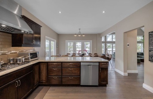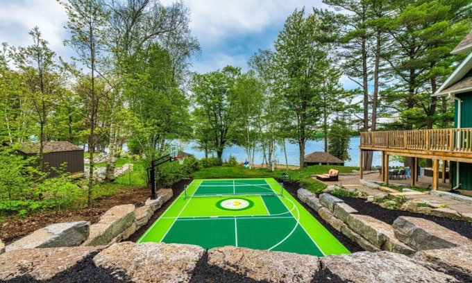 LUX Lakefront: Sleeps18+Pickleball+HotTub+Sauna+Gym+Arcade+Basketball+Volleyball is located in Buckhorn. LUX Lakefront: Sleeps18+Pickleball+HotTub+Sauna+Gym+Arcade+Basketball+Volleyball provides accommodation, featuring Child Friendly, Kitchen, Fireplace/Heating, among other amenities. This Cottage features Child Friendly, Kitchen, Fireplace/Heating, to make your stay a comfortable one.