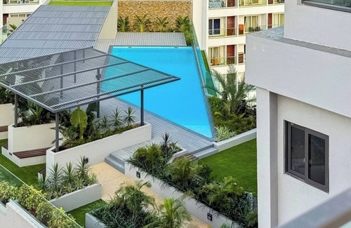 Escape to this delightful apartment with balcony and city view in picturesque East Legon, Accra. This lovely space features a cozy studio bedroom with a queen bed, perfect for a couple or solo traveler. Enjoy the convenience of amenities like AC, WiFi, and a washing machine. Book now and enjoy everything this apartment has to offer. Guests have access to underground free parking, rooftop swimming, rooftop gym and 24 hour security.