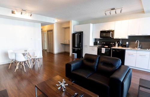 Experience modern living in Edmonton's vibrant downtown with this chic 1-bedroom apartment. Perfect for business travelers, couples, or small families, this stylish space effortlessly blends comfort with convenience, making it an ideal spot for both work and relaxation.