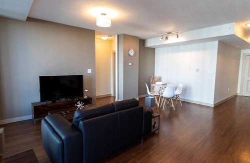 Luxe 1BR Apt with Gym: 5-min from Alberta Ground is located in Downtown Edmonton. Luxe 1BR Apt with Gym: 5-min from Alberta Ground provides accommodation, featuring Wellness Facilities, Fireplace/Heating, TV, among other amenities. This Apartment features Wellness Facilities, Fireplace/Heating, TV, to make your stay a comfortable one.