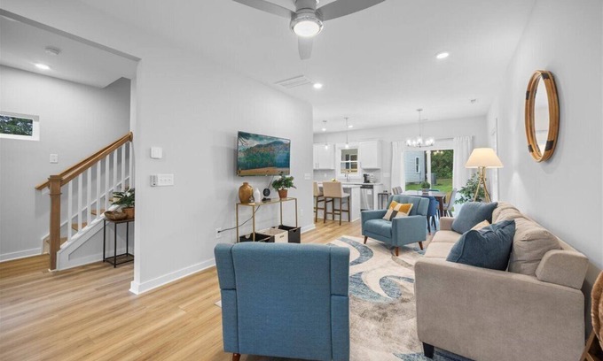 Welcome to our stylish Durham home, just minutes from Duke University, DPAC, NCCU, and Downtown. In the heart of Durham Central Park, you’re steps from restaurants, parks, museums, bars, shops, and nightlife. Perfect for campus visits, graduations, concerts, business trips, or family getaways. This home features bright living spaces, four comfy beds, a full kitchen, and fast Wi-Fi. You’ll also enjoy two private parking spots plus free street parking, a rare bonus this close to downtown.