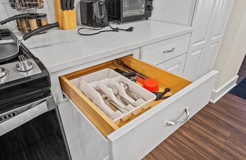 Begin your day with a perfectly brewed cup of tea or instant coffee—decaf or regular—prepared just the way you like it from the convenient coffee station in your upscale kitchen. Whether you're here for business or leisure, this space is designed to provide the perfect balance of comfort and convenience.