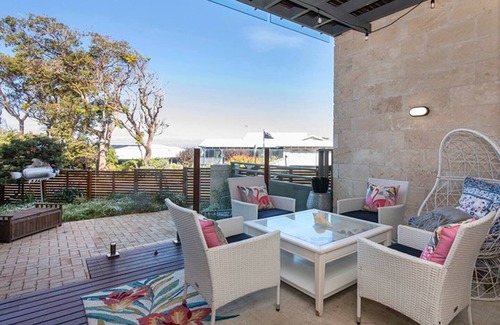 Spacious townhouse, beautifully furnished. Top appliances, solar HW, art, smart TVs, games, books, quality linen, timber floors, stocked pantry. Chef's kitchen. Fast internet. Ocean/inlet/tree views. Easy walk to shops, river, cafes. Minutes to beach. Peaceful. Each BR has own ensuite and deck. BBQ, sheltered outdoor dining, glorious courtyard. R/C air-con. Parking for 2 cars. Explore the countryside: forests, vineyards, caves. Cycle, read, cook, eat out, surf, swim, fish, a real home: RELAX.