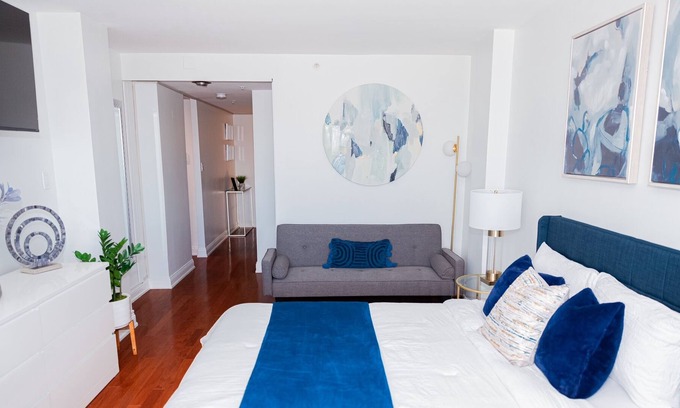 Luxe Studio Apt w/ Partial NYC View Mins to NYC has 1 Bedroom , 1 Bathroom, and max occupancy of 2 people. The minimum rental for this property is 1 nights, but this can change depending on the season you plan on staying. Previous guests have given good rated it, and VRBO labeled it a top-rated Apartment because of the excellent services rendered by the owner or manager of this Apartment, and has consistently provided great experiences for their guests. Most families or guests that use it recommend it to their friends and some of them are repeat guests. Apartment has a friendly neighborhood, and the Ampere has interesting places to visit. If you want to learn more about the Apartment in Ampere, such as places to visit and things to do nearby, you can check below to learn more.