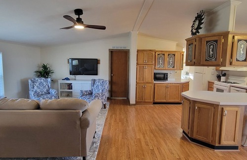 • Cozy living room with a large TV and gaming system