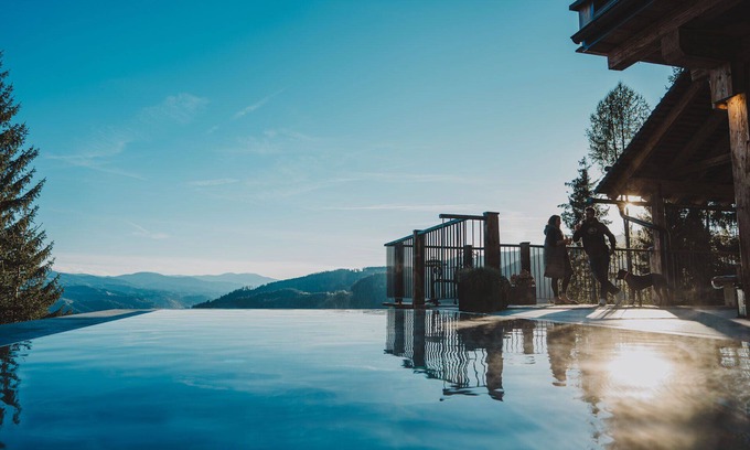 Alpine vacation in the heart of Styria with an unobstructed view of the valley, the surrounding mountains and forests. Well-being for all the senses at 1,000 m above sea level in a secluded location.