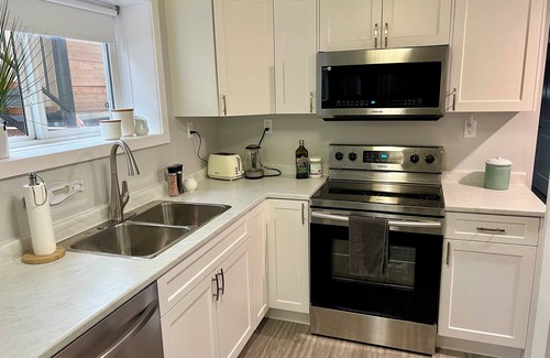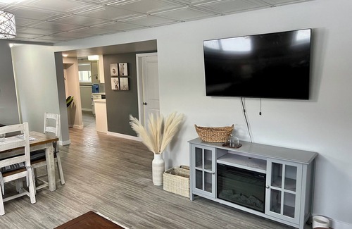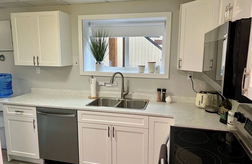 We are located in a safe, quiet neighbourhood. This newly renovated suite has a private entrance, a garage on request for your vehicle, and a fully fenced backyard. We've invested in the suite to make your stay as comfortable as possible. Your fully loaded kitchen comes with everything you will need, and even air fryer and BBQ. We try to keep the kitchen stocked with all the cooking supplies that we would want to have in our kitchen.