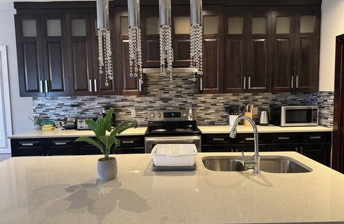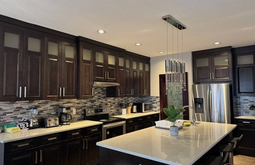 This stylish and spacious home is perfect for groups, corporate organization and multi-family trips. This beautiful home is close to all amenities. It is located about 3 minutes' drive to Anthony Henday, and this makes it possible to explore different parts of the city. This is a dream home away from home to unite as a group or family.