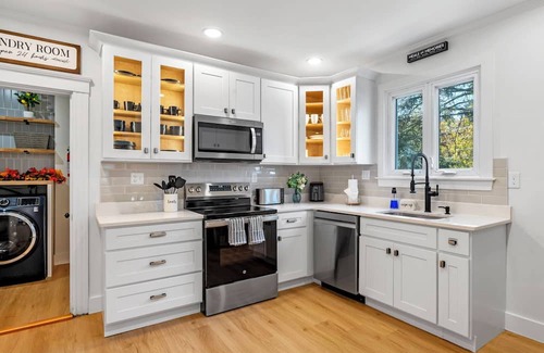 2. **Kitchen:** Modern and fully stocked, it includes new appliances like a refrigerator, microwave, stove/oven, tea kettle, French press, and coffee maker. Whip up your favorite meals with our provided pots, pans, and cooking essentials.