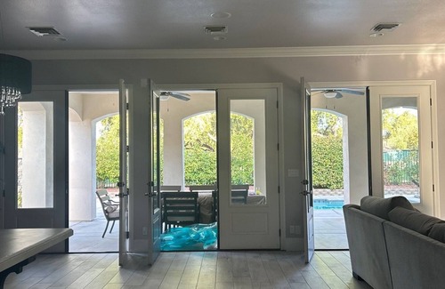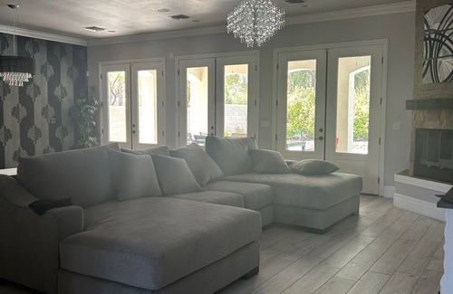 Nestled in Las Vegas, this delightful house offers a serene and wonderful retreat for guests. With 4 bedrooms including 2 king beds and 2 queen beds, along with 4 bathrooms featuring luxurious amenities like a bidet and jetted bathtub, this adorable property ensures a comfortable stay. An additional office space with a twin bed provides extra flexibility for guests. We'll be available to answer any questions while you stay at our place. There is a beautiful courtyard that is gated and is a great area to drink coffee in the morning or relax in the evening. There is also a heated pool, hammock and putting green.