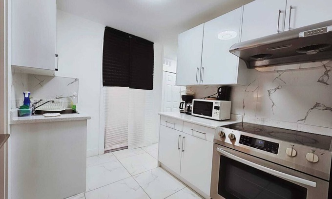 3 Bedrooms, 1 Bath: Enter directly into a modern kitchen. The suite includes a queen-size bedroom with closet, and makeup table, adjacent to the kitchen, and a full bath located at the end of the kitchen. Continue to the living room with a smart TV (no cable) and find two more queen-size bedrooms, one with a closet. 2 out of these bedrooms have Window AC