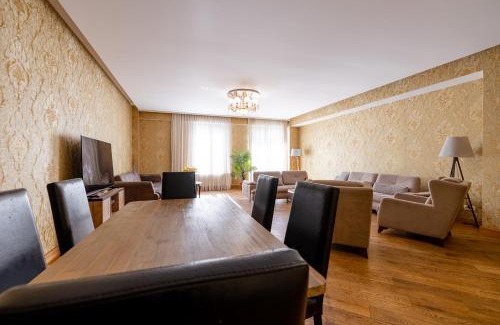 A 9-minute walk from Freedom Square in the center of Tbilisi, Luxurious Apartment In The Central Tbilisi provides accommodations with access to a garden. The property is around 3.4 miles from Medical University Metro Station, 1.1 miles from Saint George's Armenian Cathedral, and 1.8 miles from Presidential Palace. There's a children's playground and guests have access to free Wifi, free private parking, and an electric vehicle charging station. Providing a balcony and mountain views, the spacious apartment includes 5 bedrooms, a living room, satellite flat-screen TV, an equipped kitchen, and 5 bathrooms with a walk-in shower and a bidet. The air-conditioned unit at the property features a bath and a dressing room. For added privacy, the accommodation has a private entrance and soundproofing. There is an on-site coffee shop. Sightseeing tours are available in the vicinity of the property. Popular points of interest near the apartment include Rustaveli Theater, Tbilisi Opera and Ballet Theater, and Tbilisi Concert Hall. Tbilisi International Airport is 10 miles away, and the property offers a paid airport shuttle service.