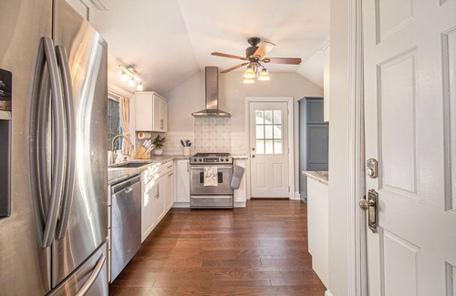 Your biggest decision when staying at the Hickory House will be to stay at home or go explore all that Milford has to offer - just minutes from your doorstep! Indoors, enjoy luxury mattresses and furnishings, expansive coffee/tea bar, limitless draft root beer, games & puzzles! Read a book as the kids enjoy hours on the stair slide! Outdoors, you'll relax in a beautiful, private yard which offers a fire pit, grill & hot tub, as well as many yard games, including an authentic bocce court!