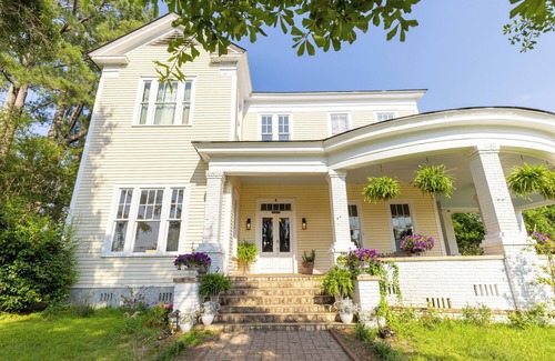 Experience living at its finest in this stunning 6-bedroom Victorian mansion in Montezuma, Georgia. Built in 1901, and now fully renovated, this charming property boasts a 42' x 16' heated swimming pool, jacuzzi, chef's kitchen, and relaxing grounds in a small-town setting. With plenty of space for large groups, this house operates in the off-season as an artist residency and creative retreat, with a contemporary art collection, game room, bocce court, and dedicated work spaces in every suite.