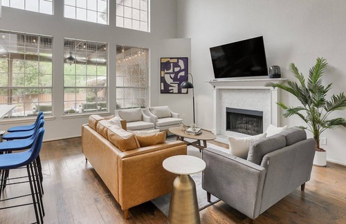 Welcome to your grand vacation home! The experience starts right as you pull up and see the charming and inviting exterior accented by the manicured front lawn. As you enter through the bright, open, high-ceilinged entryway, your jaw will drop as you take in your surroundings. The home is luxurious and lavish with gorgeous finishes throughout. The open concept layout, large windows, and soaring ceilings make the home feel even more spacious. Plus, the modern eclectic furniture and décor, accented by great lighting, is just the icing on the cake!
