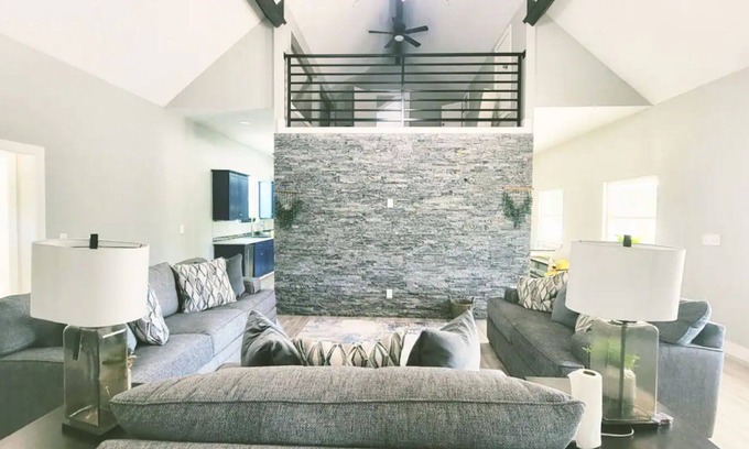 Large custom home down quite road on acres in the outskirts of Terrell. Easy access to Hwy 80 and Hwy 20. Ten minutes from town. Enjoy a king sized bed and a master bathroom with walk in shower and soaking bathtub. Entertain guests at our large kitchen with all the amenities including 3 large ovens, commercial refrigerator and abundant countertop space. A stay that feels like home.Tranquility down a quiet country road, this brand new home offers many amenities. Perfect for stay-cations, family gatherings, and work trips.