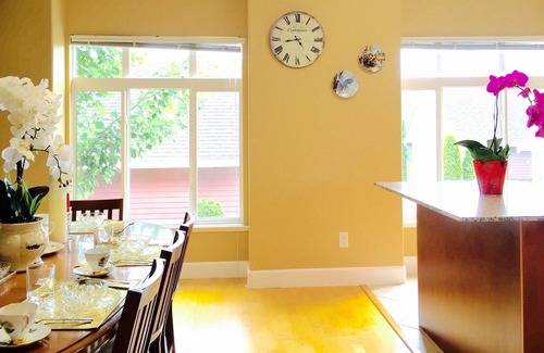 Unique Special very clean entries Townhouse. with quality lines and towels. Double garbage parking located in the heart of Steveston Village! Just step away from bus stop community Centre,Steveston Park, number of coffee shop,restaurant Fisherman’s Wharf,15 mn to Airport YVR,20 mn from US BORDER and 30 mn to Downtown Vancouver .