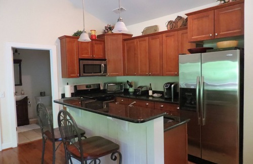 Careful consideration went into every aspect of our Guest House accommodations. There are two comfortable master bedroom suites with inviting private baths. Relax in the central great-room in front of an evening fire. The gourmet kitchen with cherry cabinets, stainless steel appliances and granite countertops is a weekend chef’s delight!