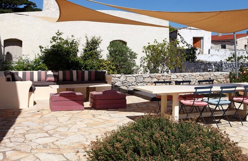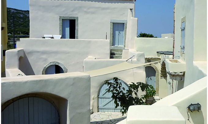 A 5 bedroom renovated house with 2 separate 2-floor complexes sharing a common patio in a traditional medieval village in Kythira.
