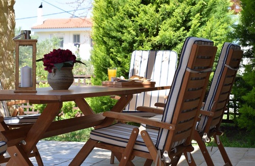 Located in Agios Basileios, a suburb 15km from Patras, the villa combines both the tranquility of the Greek countryside and also advantages of being close to a big city with many amenities & conveniences. A car is not essential due to the proximity of the venues and the services of the local area (and since bicycles are provided by the owners), in addition to the fact that a suburban railway connects the suburbs to the city center. Nevertheless, there are many local destinations, resorts and attractions that require a vehicle.