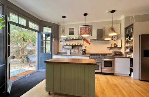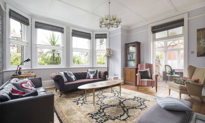 Richmond Beach House is an early Victorian Villa with many original features. Bohemian Chic filled with loads of eclectic furniture and charm. It offers the perfect backdrop for gatherings with friends and family, for weekend breaks or Summer Holiday fun. There is a courtyard patio-a great sun trap and a larger patio area with an eating area. For those with little ones, a built in garden Trampoline. If the weather turns, which is rare in Thanet as it seems to enjoy its very own micro climate. Set a fire and cosy up with a good book and a cuppa.