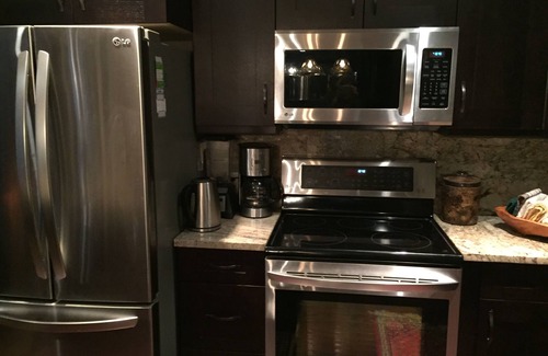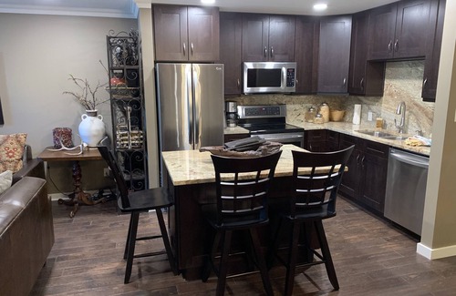 GRAND, HIGH END TOWNHOUSE, 1260 sq. feet, so very spacious and comfortable with Leather Sofa's, and Handcrafted Stone Fireplace. Peace, Quiet and much Tranquility at your door.