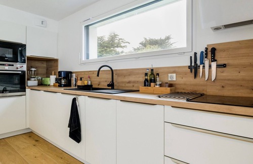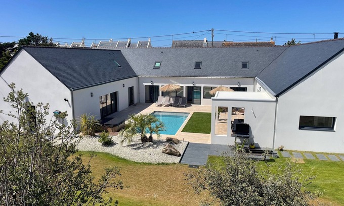 La Belle Escale is an exceptional villa ideally located 50 meters from the beach, 250 meters from the Guérande salt marshes, 800 meters from the Port de la Turballe, and 3 km from the Pen-Bron Strait protected area.