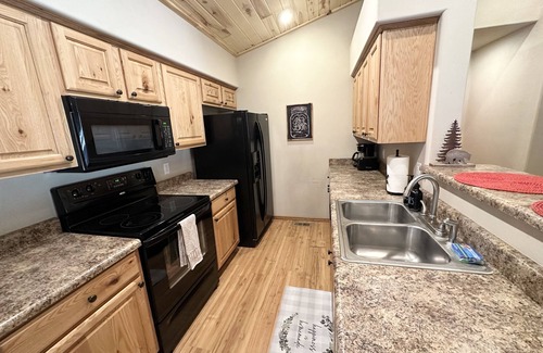 This one of a kind cabin is newly furnished with a cozy cabin feel. Attention to detail was not spared. We used high quality linens, a fully stocked kitchen with keurig coffee machine, multiple cooking and baking supplies, and board games for the family to enjoy. Free Wifi, DISH Satellite to watch on a Flat Screen HDTV w/ a DVD/Blu Ray player and Google Chromecast to stream your favorite shows from your mobile device are included. The extended back deck faces a pine covered hill for extra seclusion and privacy. Enjoy a delicious grilled dinner (grill included) on our outdoor dining table. Enjoy a cup of hot cocoa while sitting in front of a floor to ceiling fireplace.