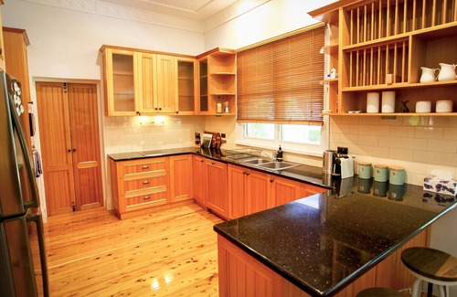 The house includes a fully equipped gourmet kitchen, including microwave, toaster, sandwich press, Nespresso coffee pod machine, electric frypan, kettle, dishwasher, fridge, ample cooking and baking utensils, crockery and cutlery.