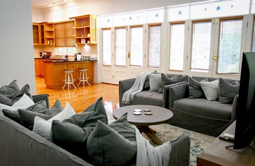 Jacaranda is one of the original homes of Wagga. Featured in 'Easy Outdoor Living', and 'Tiny Tasting Trails', this home showcases fireplaces, vaulted tin-pressed ceilings, bay window, sunroom and art deco stained glass windows. With recent renovations, including three new luxurious bathrooms (with heated towel rails and heat lamps) and stylish finishes throughout, it offers a unique stay for those families visiting the area, couples desiring a romantic weekend away, bridal parties and wedding stays, or professionals looking for a longer-term rental.