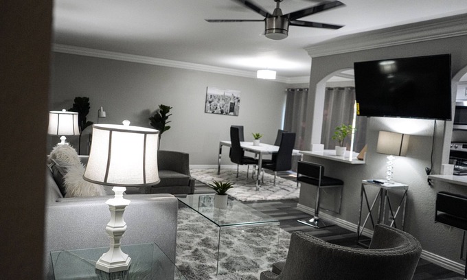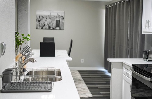 This spacious, newly remodeled Luxury Arlington / Grand Prairie Condo, minutes away from DFW airport, Six Flags, Stadium, etc. Fully upgraded non-smoking 2bed 2bath Condo that comes fully furnished with a fully equipped kitchen, washer and dryer set and a quaint Patio. The cozy living room features a comfortable sofa for relaxing as well as a four-person dining table. A big, flat screen television means you can enjoy your favorite cable programming and have access to multiple Smart TV programs.