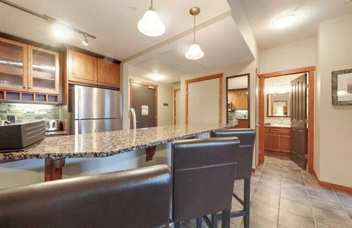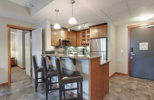 Stay at 2 units for the price of 1!! One side of suite provides kitchen, dining room, living room (pull-out couch), bedroom, full bath & laundry while the other side of the suite (which can be locked off) two queen beds, full bath and bar fridge. The ideal unit for larger groups of up to 8!! Amenities include year round heated outdoor pool, 2 outdoor hot tubs, fitness room, on-site spa treatment rooms, on-site EV chargers, underground parking with self car wash, & outdoor bbq area/courtyard.