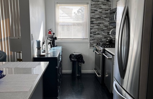 Welcome to our newly renovated 2BR/1BA apartment in Jersey City. Perfect for tourists, families, couples, and professionals. Situated in a quiet and safe neighborhood, it offers a stylish and spacious retreat. Features all black wood flooring, 2 cozy queen beds, SS CAFE appliances (fridge, stove, dishwasher), GE washer/dryer combo appliance and free dedicated parking. Nearby shopping centers and a 20-min drive to NYC. Only 20 mins from Newark EWR. Easy access to NYC bus (5-min walk). Enjoy comfort and convenience in our Jersey City apartment.